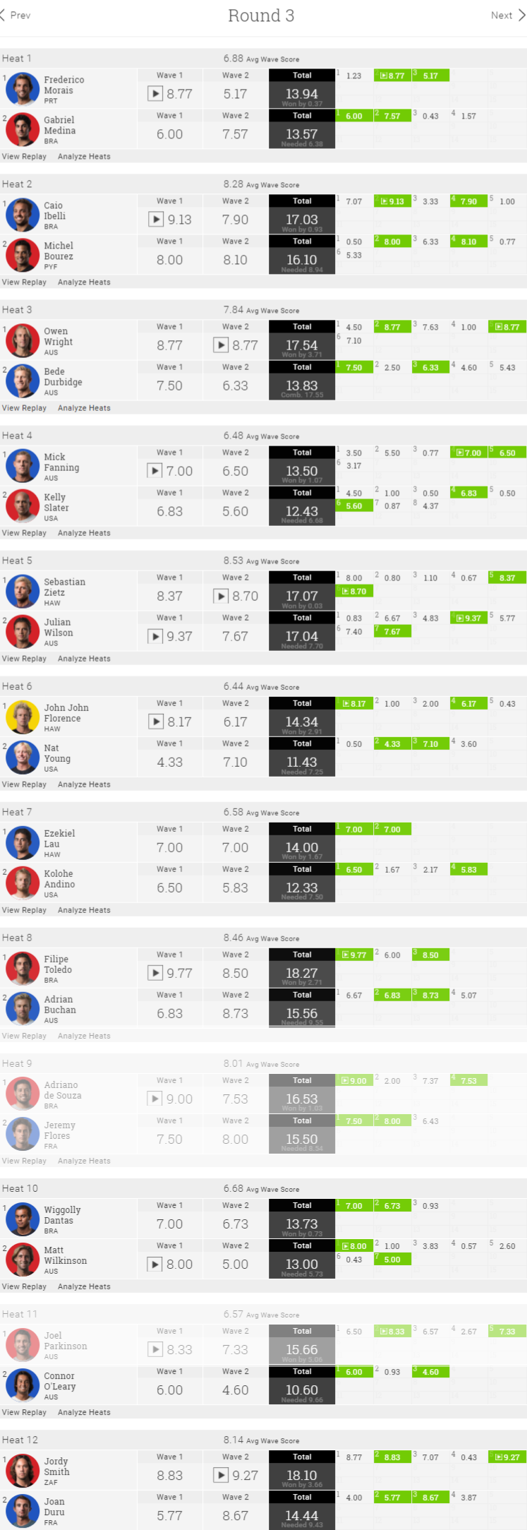 ウイメンズは終了しましたが、メンズはまだラウンド3が終わったばかり。残り16ヒートあるので、終了させるには丸一日使うほどの時間が必要になります。
