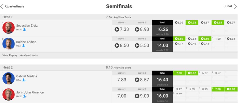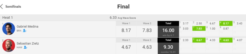 ジョンジョンの勢いは誰にも止められないほどに思えたのですが、セミファイナルで快進撃はストップ。ジョンジョンにストップをかけたのは、最大のライバルであるガブリエル・メディナ。