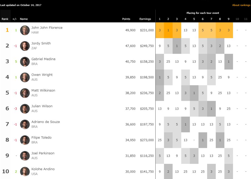 今回の優勝により、ガブリエルは5ランクアップのCTランク3位へとジャンプ。数字上はタイトルレースに絡むのでしょうが、現実的にはジョンジョンとジョーディの二人に絞り込まれた事でしょう。