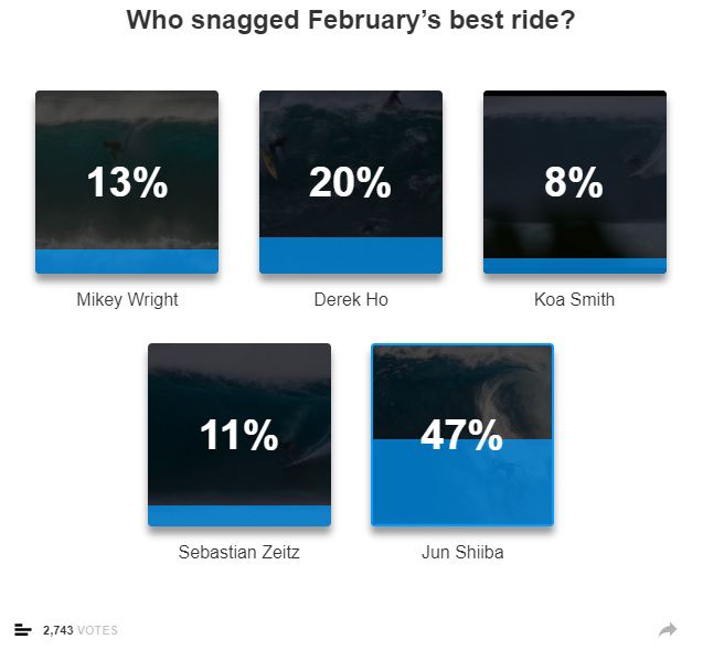 2017/2018年シーズンの最終月となった2月もまた、3回ほどのソリッドスウェルがオアフ島(ハワイ)ノースショアに押し寄せ、素晴らしいライディングがノミネートされています。