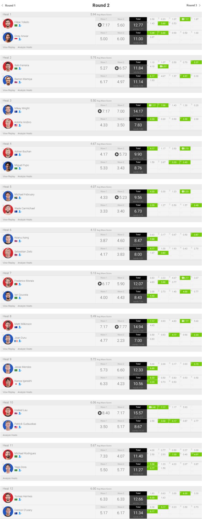 本日もメンズのみ開催となり、ラウンド2ヒート7からラウンド2残りヒート全てが行われました。