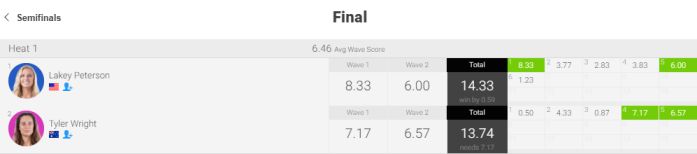 レイキー・ピーターソンとタイラー・ライトによるファイナルのみ開催となった本日のウイメンズ。