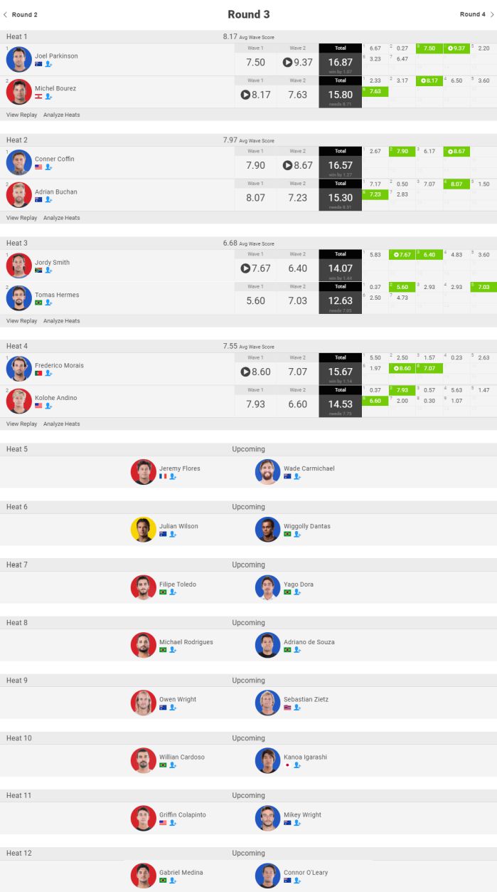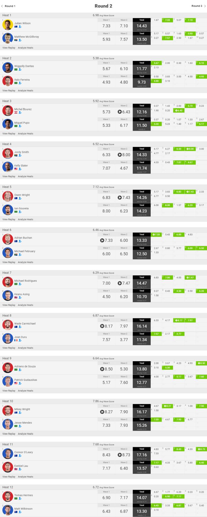 その他、注目ヒートとしてはツアー復帰したばかりのケリー・スレーターがラウンド2でジョーディ・スミスに敗退。