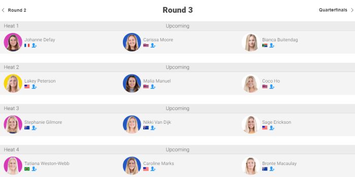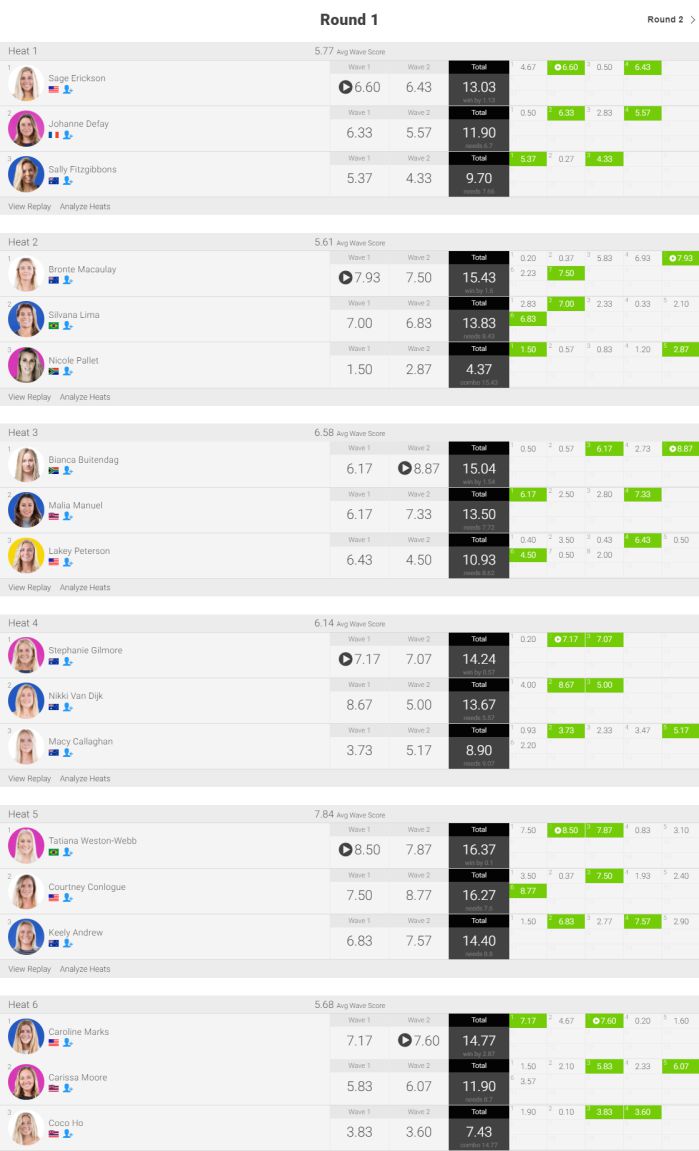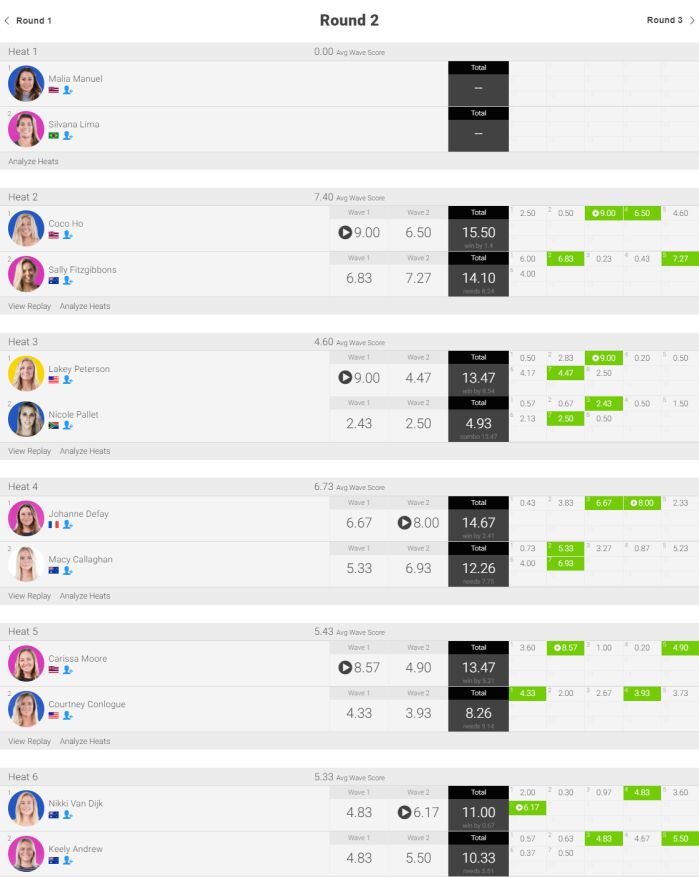 欠場に関して言えば、ラウンド1に出場したシルヴァナ・リマは波を攻めすぎてヒート中に膝を痛めてしまい、ラウンド2は棄権となりました。