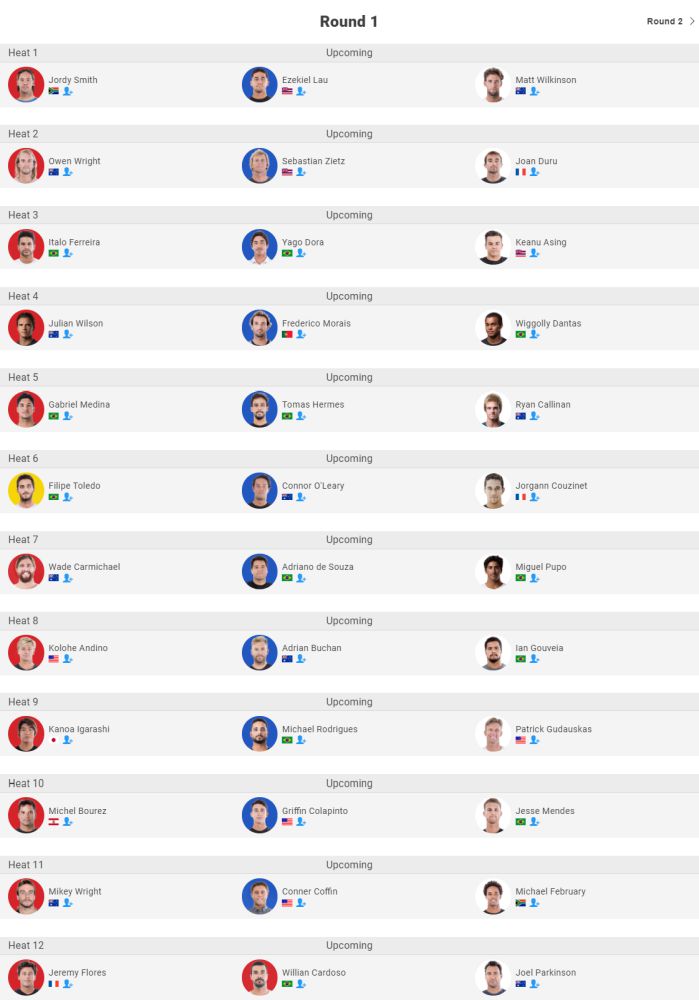 メンズの今イベント欠場サーファーは、ジョンジョン・フローレンス、ケリー・スレーター、カイオ・イベリの3名。