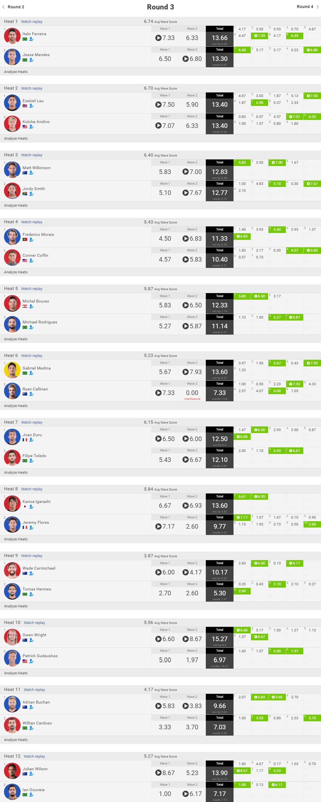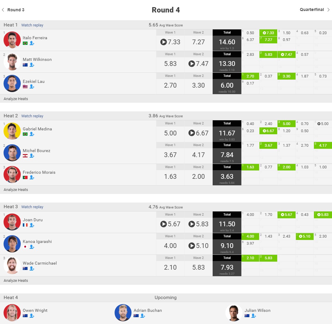 ラウンド4に進むと、ヒート2に出場したガブリエルは順調にラウンドアップを決め、今イベントでは5位以上の結果を残すことになることが確定。