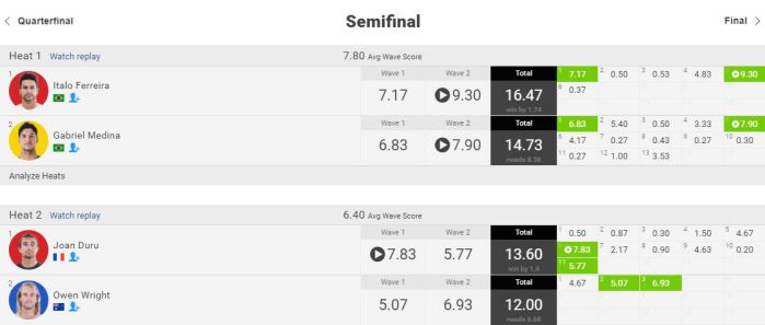 ただ、本日のイタロを勢いを止めるにはエアリバースのフルローテーションをコンスタントにメイクできるサーファーでなければ厳しく、そんなサーファーはCTでもイタロ、ガブリエル、フィリペくらい。