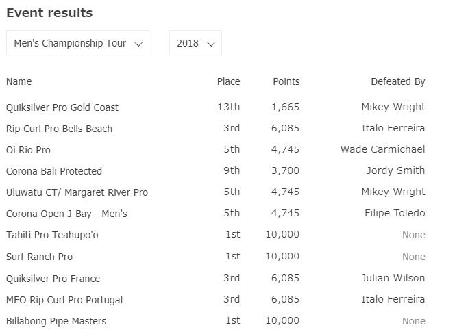 1コケとなる25位が一度もないのも特徴ですね。ちなみに、ワールドツアーの最終トータルポイントはワースト2のポイントを削除して計算します。
