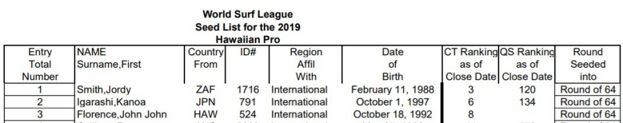 来週の2019年11月13日からウェイティングピリオドがスタートとなるQS10,000イベントのハワイアンプロ。
