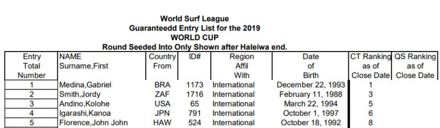 イタロとフィリペはハワイアンプロとワールドカップには出場せず、ガブリエルはワールドカップのみエントリーしています。