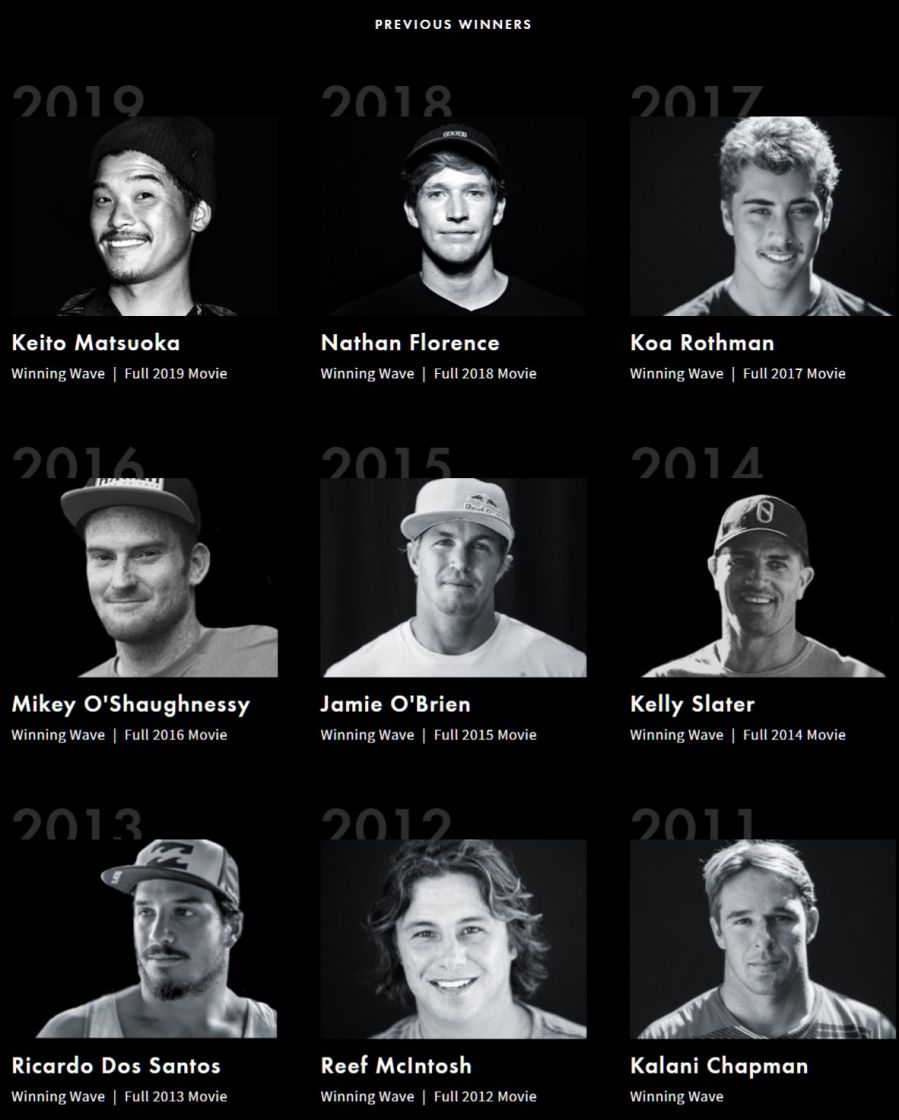 今シーズンで10年目を迎えることになったWOTW。2014年にケリー・スレーター、2015年にジェイミー・オブライエンといったパイプマスターも受賞しています。