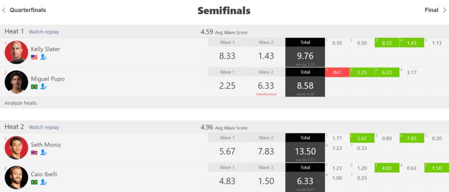 その結果、ミゲルがインターフェアを犯したとの判断が下され、ミゲルのセカンドハイエストウェイブのスコアが半分となるペナルティが課せられました。