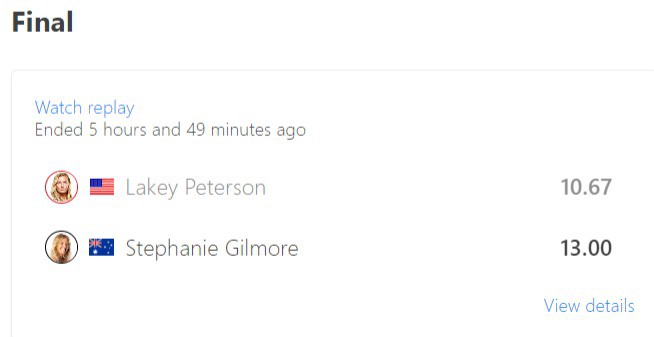 レイキーは素晴らしいサーファーだからタフな展開になることも分かっていたけど、とにかく優勝は最高で、これ以上の気分はないわ。