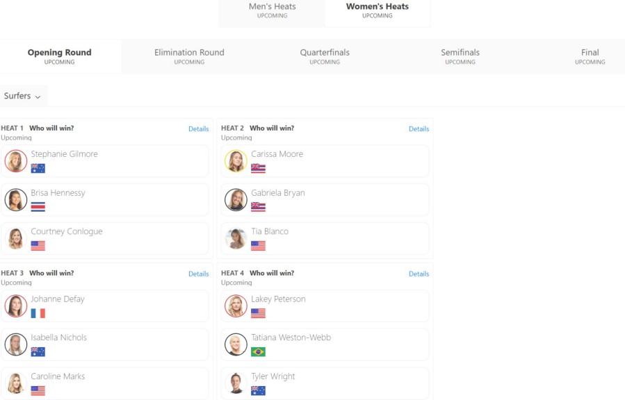 ウイメンズで今イベントを欠場するCTサーファーはいなくて、前イベントを欠場したタイラー・ライトは今回は出場。