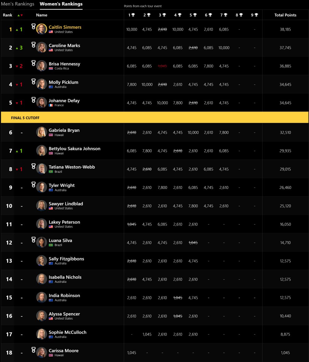 ちなみに、ジョンジョンは今回の優勝により、WSLファイナル進出が早くも確定となりました。
