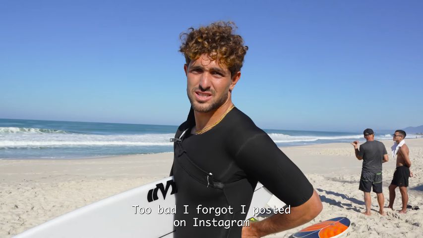 ホームのブラジルでフリーサーフィンをしたり、トレーニングに励む様子が映し出されています。