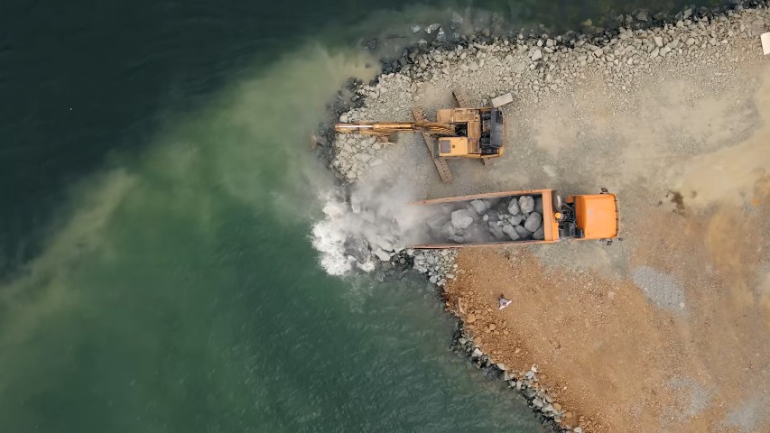 こちらで行われている工事は船舶が安全に発進と着岸できるようにと、2つの防波堤をサーフスポットのラインナップに建設しているとのこと。