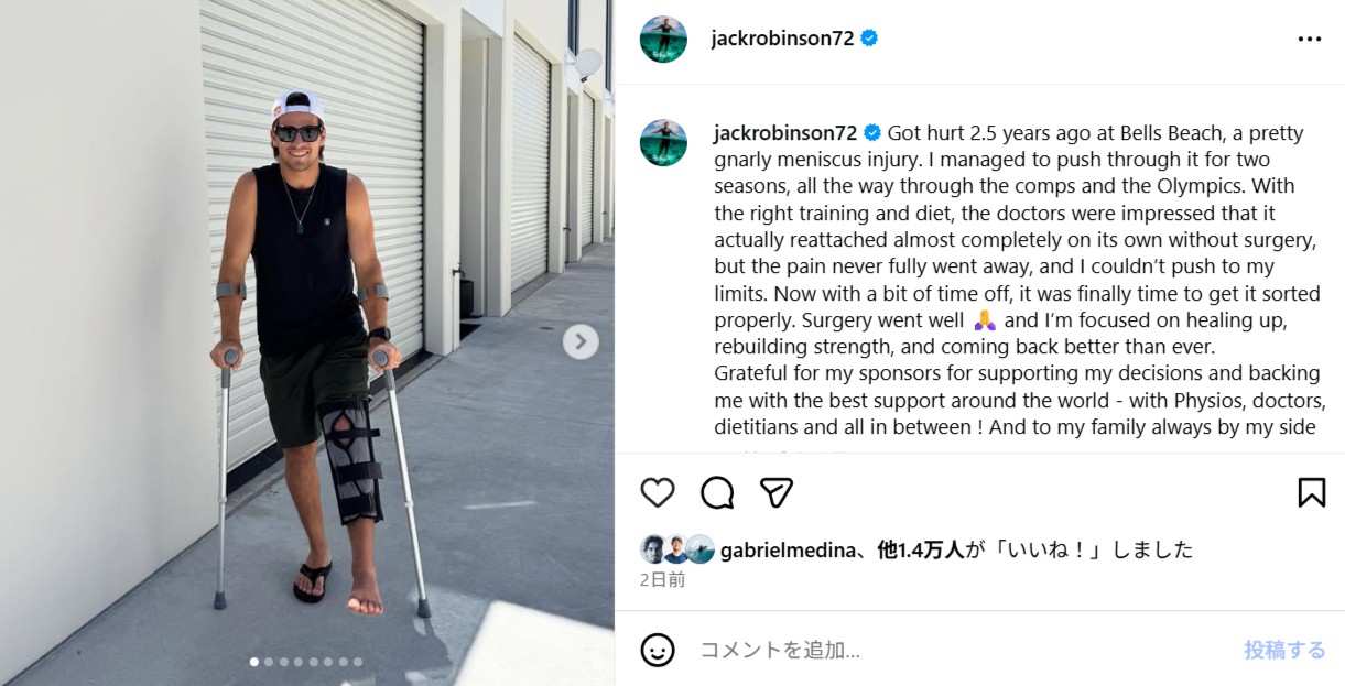 今回の記事は、ジャック・ロビンソンがSNS投稿した手術に関するニュースをお届けします。