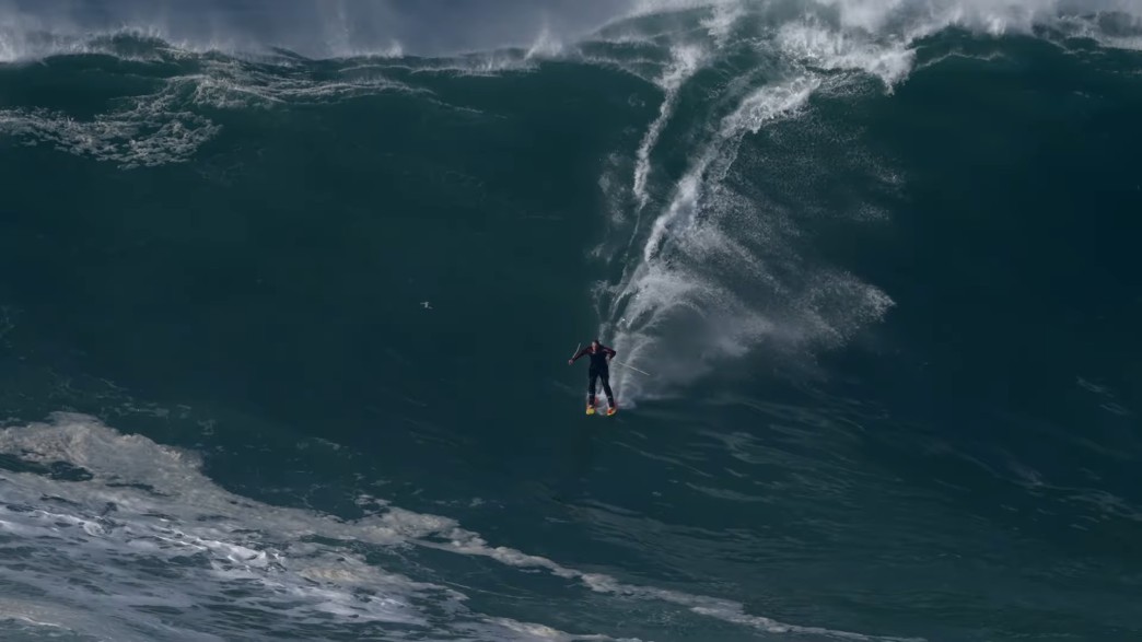 そのナザレでWSL(ワールドサーフリーグ)によるビッグウェイブイベント開催後にチャックがスキーチャージと言う他に例がないチャレンジにトライしたとのこと。