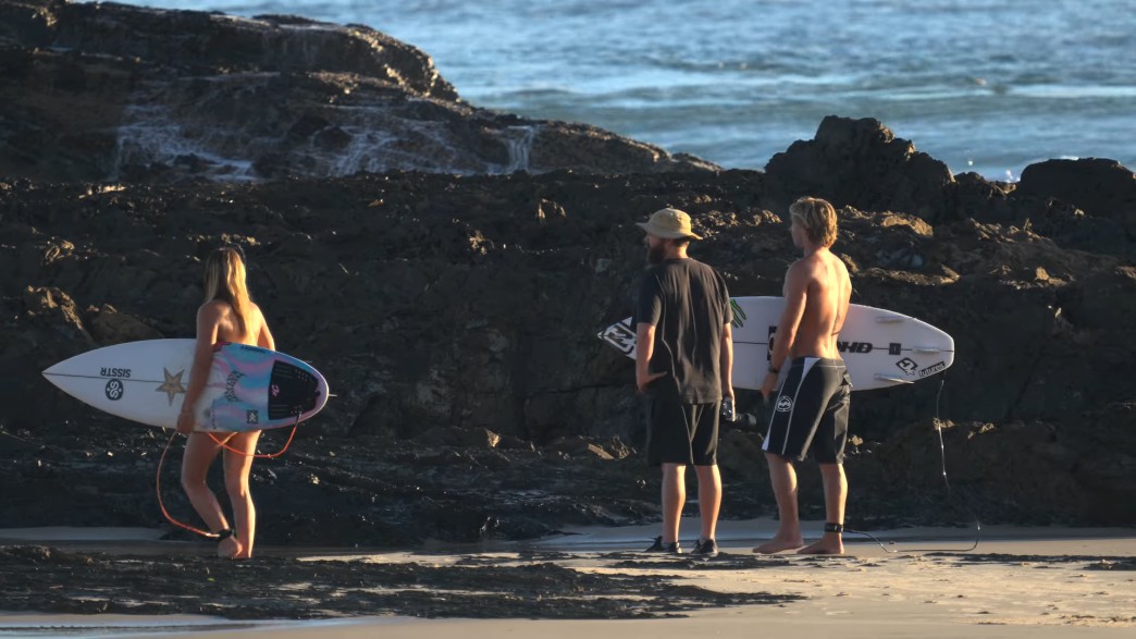 そんなプロサーファーの一人がイーサン・ユーイングで、ガールフレンドのソイヤー・リンドブラッドも一緒にいますね。