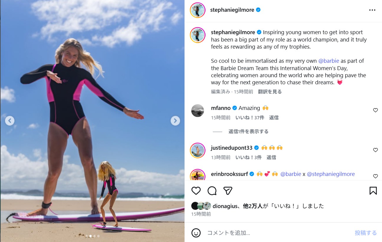 サーフィンがオリンピック種目となり、女性サーファーの活躍が世界中で注目される現在、ステフがバービーになったことは業界にとって大いなる一歩。