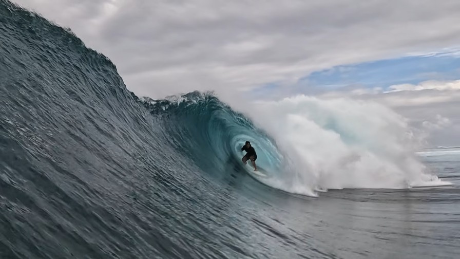 実際、今回のハンターの紹介している動画を見ると、季節外れのスウェルがヒットする直前の様子でも、バレルを伴うコンディションを当てているので。