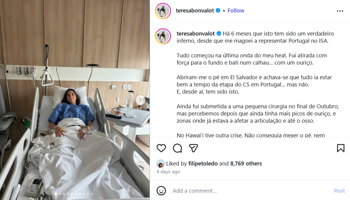 ただ、この失速の原因はサーフィンの調子ではなく、ウニの棘が体内に残っていた事で生じた合併症だったとSNSで発表し、手術を行ったことを報告しました。