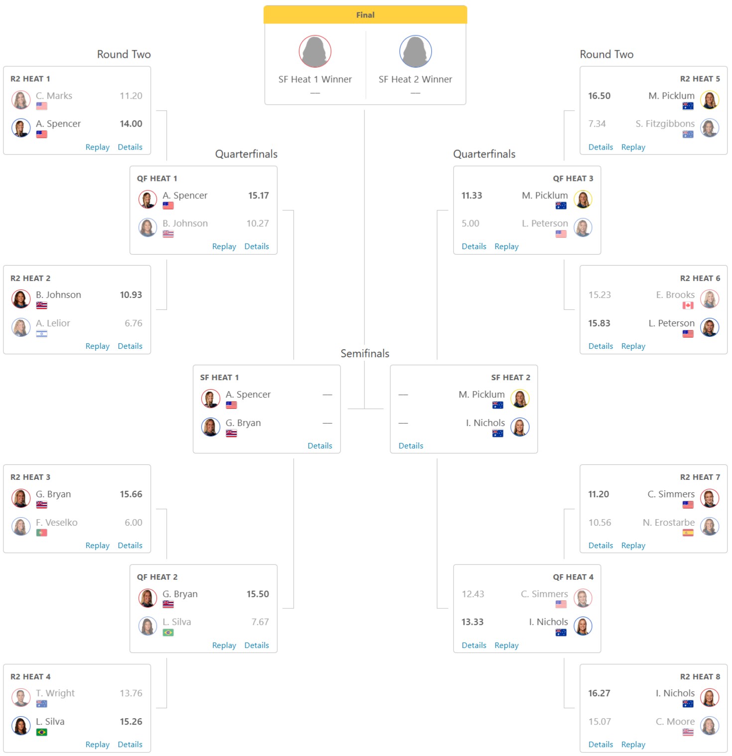 グーフィーフッターのアリッサとレギュラーフッターのガブリエラと言うスタンス違いの2人は、次なるセミファイナルで対戦となります。