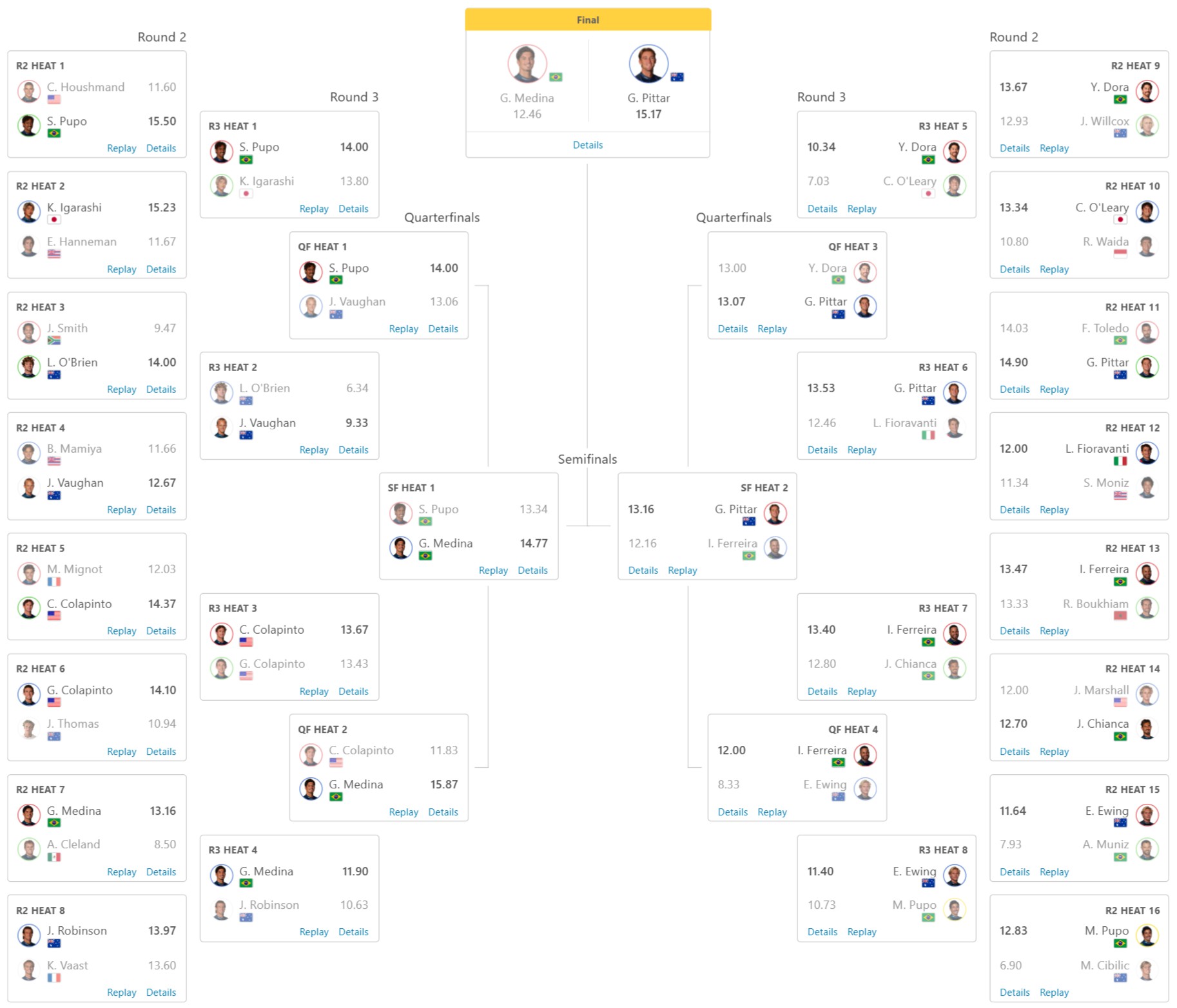 ファイナルは3×ワールドチャンピオンのガブリエル・メディナとのマッチアップ。