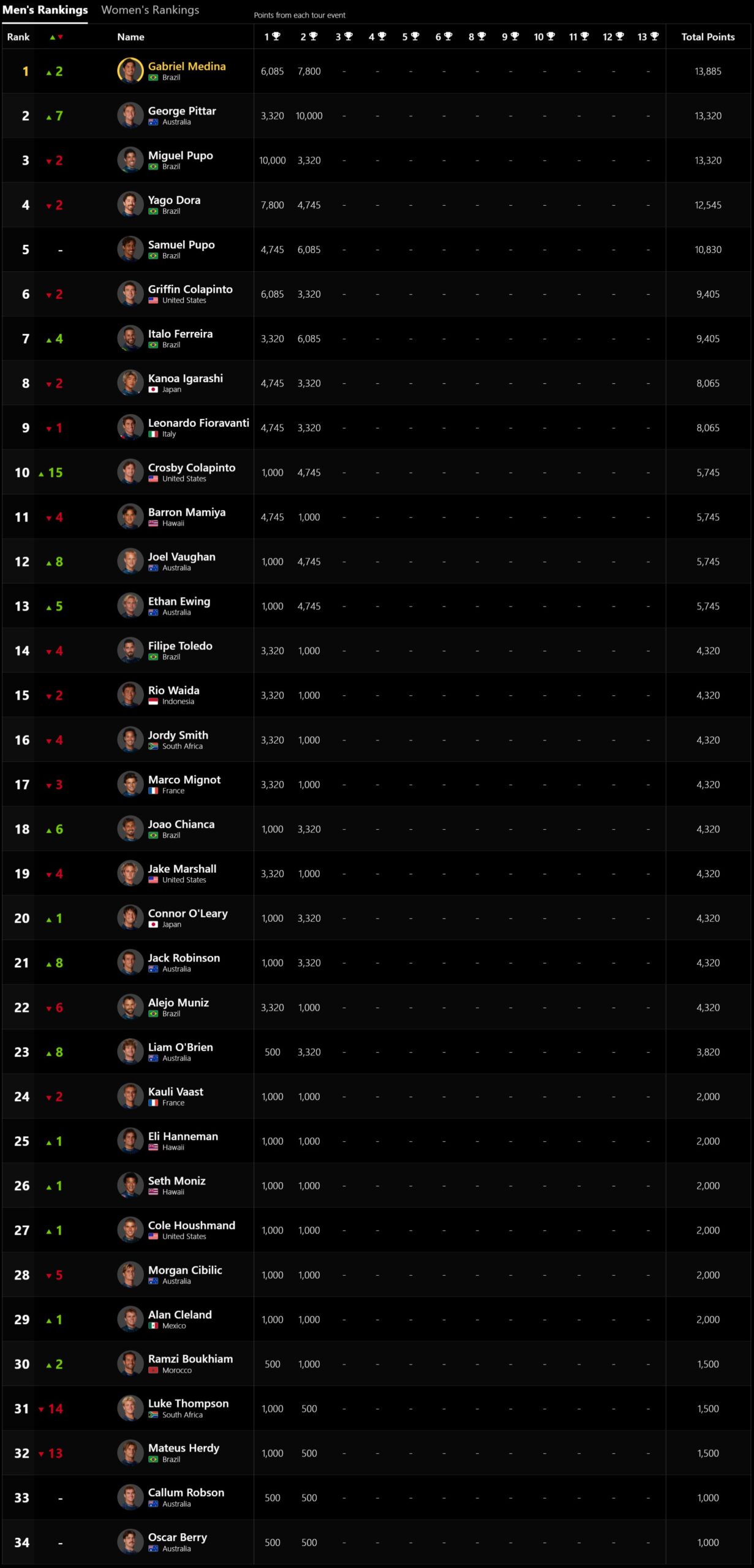 ガブリエルは終盤で逆転に必要なスコアは8.35と十分に可能なようにも思えましたが、一度崩れたリズムは回復することなくジョージのCTイベント初優勝が決定となりました。